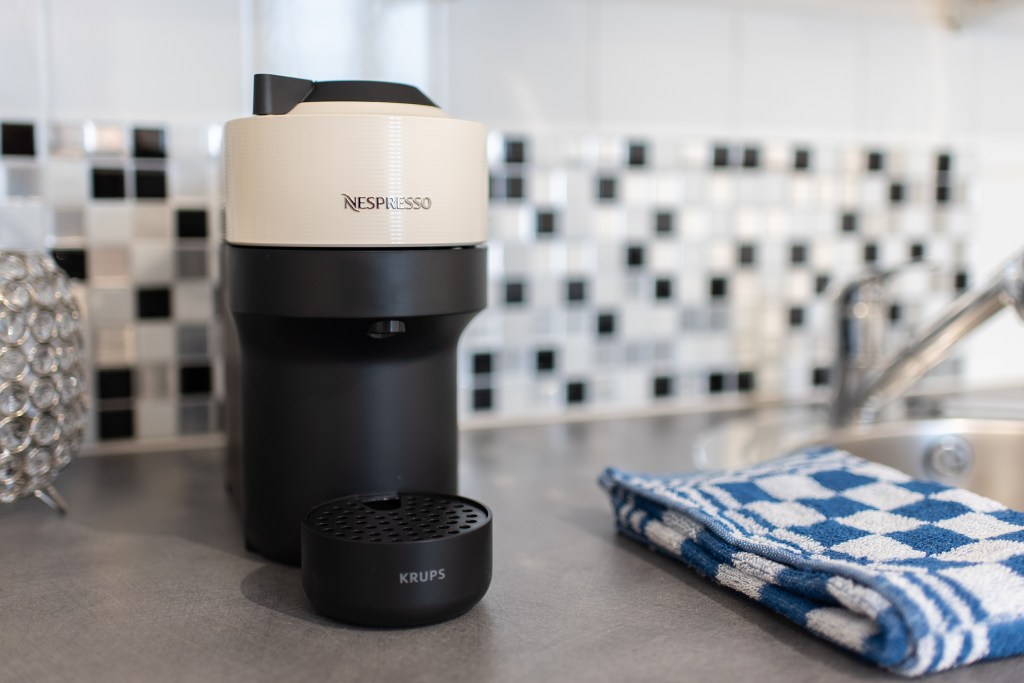 L’appartement dispose d’un petit balcon et de sa table avec deux chaises.